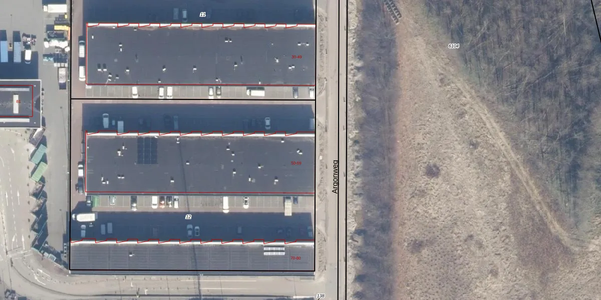 Het perceel waarop Argonweg 50 staat heeft een oppervlakte van 4646 m². Dit is een zeer groot perceel. De perceeloppervlakte wordt geregistreerd door het Kadaster. Gedetailleerde informatie over de maten van dit perceel kunt u vinden in het rapport Kadastrale kaart met maatvoering van Argonweg 50.