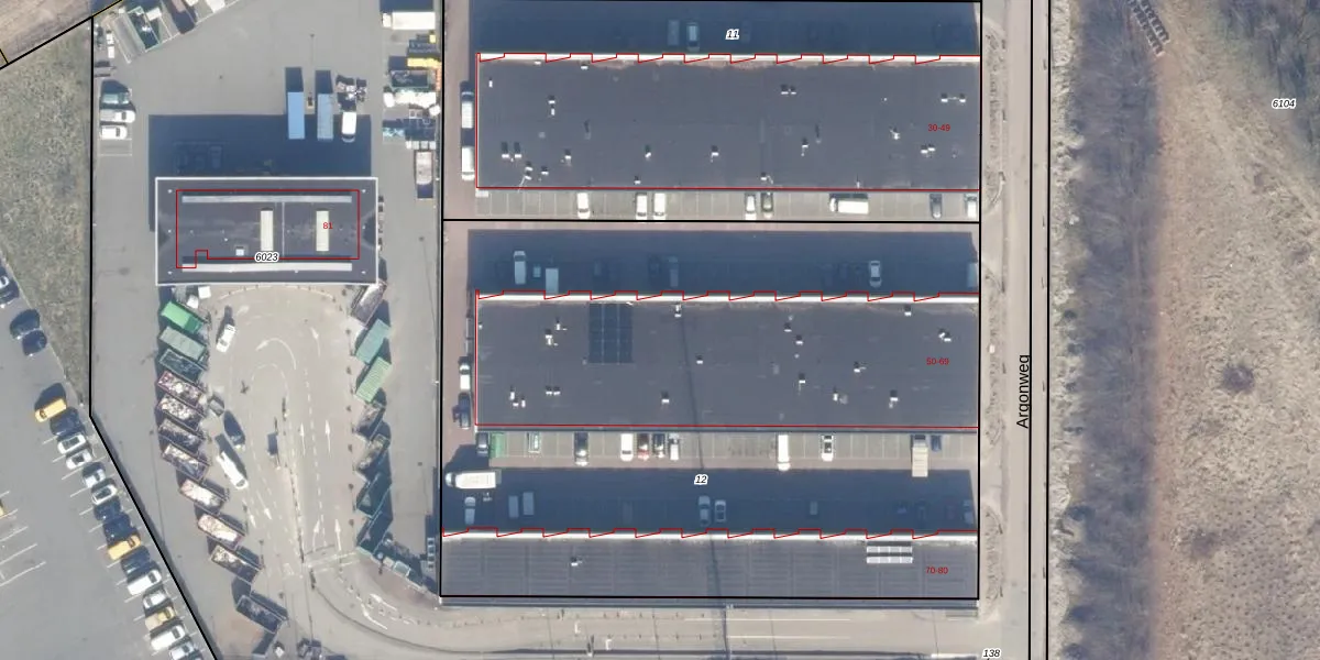 Het perceel waarop Argonweg 56 staat heeft een oppervlakte van 4646 m². Dit is een zeer groot perceel. De perceeloppervlakte wordt geregistreerd door het Kadaster. Gedetailleerde informatie over de maten van dit perceel kunt u vinden in het rapport Kadastrale kaart met maatvoering van Argonweg 56.