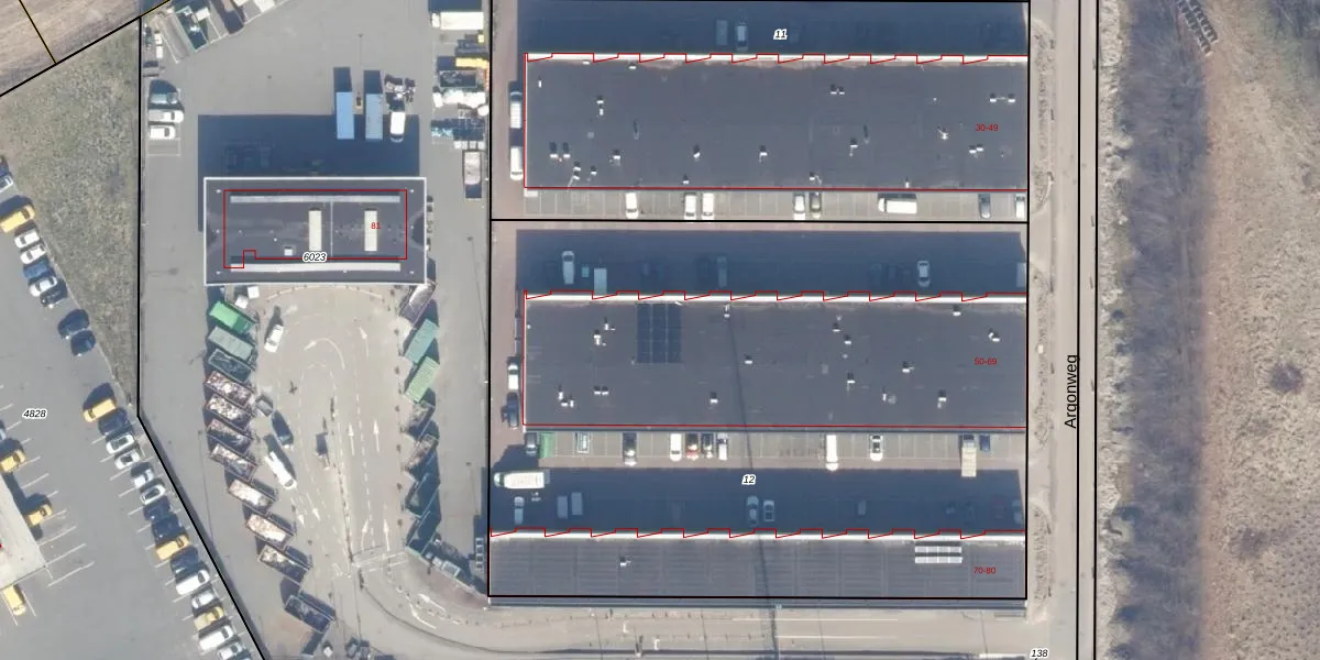 Het perceel waarop Argonweg 57 staat heeft een oppervlakte van 4646 m². Dit is een zeer groot perceel. De perceeloppervlakte wordt geregistreerd door het Kadaster. Gedetailleerde informatie over de maten van dit perceel kunt u vinden in het rapport Kadastrale kaart met maatvoering van Argonweg 57.