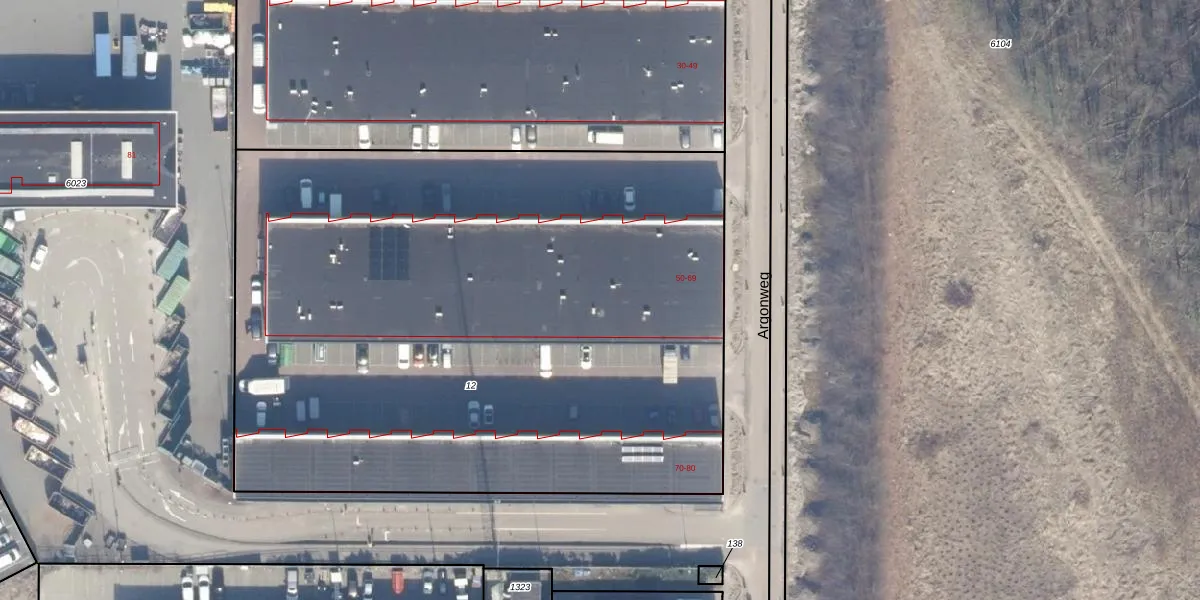 Het perceel waarop Argonweg 67 staat heeft een oppervlakte van 4646 m². Dit is een zeer groot perceel. De perceeloppervlakte wordt geregistreerd door het Kadaster. Gedetailleerde informatie over de maten van dit perceel kunt u vinden in het rapport Kadastrale kaart met maatvoering van Argonweg 67.