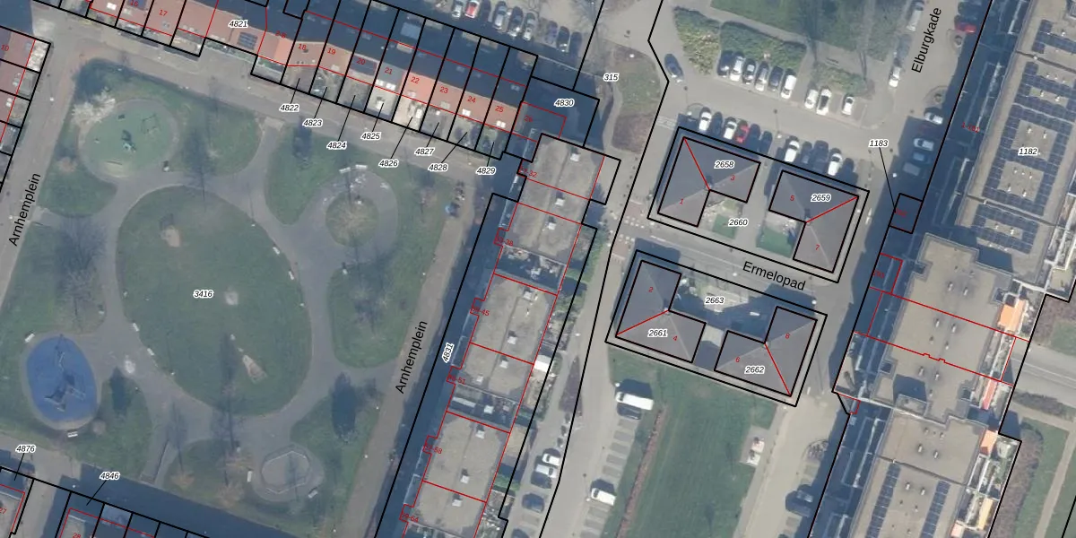 Het perceel waarop Arnhemplein 34 staat heeft een oppervlakte van 1826 m². Dit is een zeer groot perceel. De perceeloppervlakte wordt geregistreerd door het Kadaster. Gedetailleerde informatie over de maten van dit perceel kunt u vinden in het rapport Kadastrale kaart met maatvoering van Arnhemplein 34.