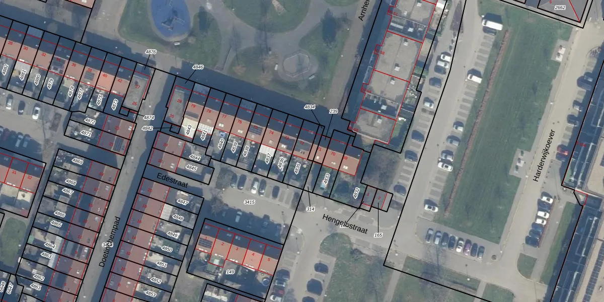 Het adres ligt op het perceel AMR04-K-4835, dat zich in de kadastrale gemeente Almere bevindt. Het perceel is kleiner dan gemiddeld in Almere. Het perceel is 139 m² groot, terwijl het gemiddelde ligt op 3328,15 m². De grootste perceeloppervlakte in de kadastrale gemeente is 32,12 km². De kleinste oppervlakte bedraagt 0 m². Dit is het enige adres dat aanwezig is op het perceel. De laatste wijziging in het de Basisregistratie Kadaster (BRK) was op 27-01-1999.