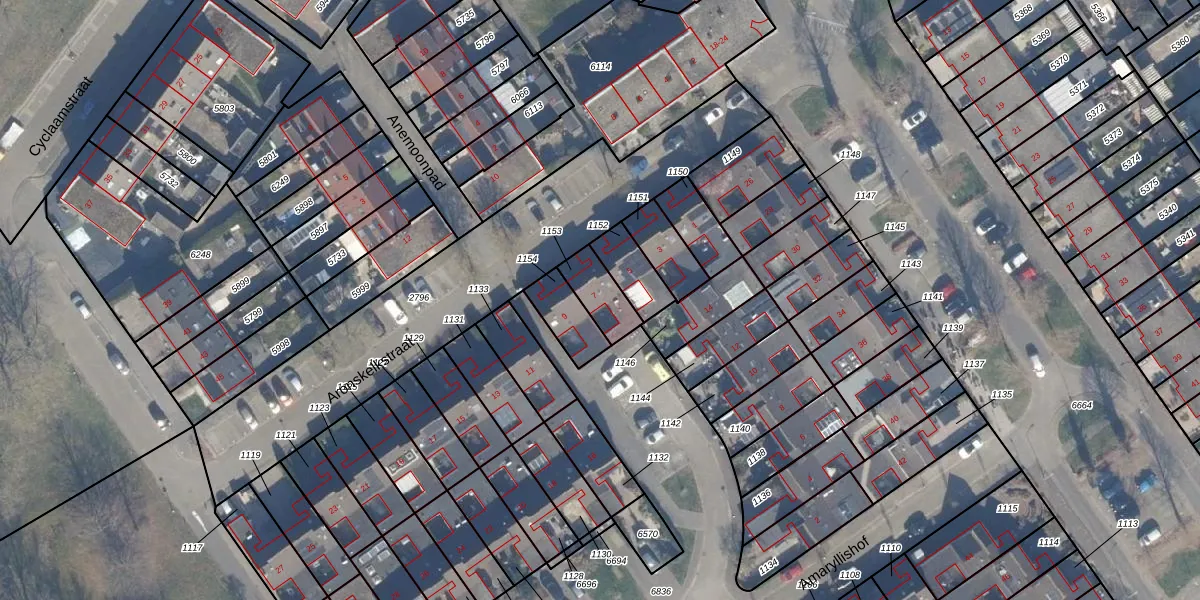 Het perceel waarop Aronskelkstraat 7 staat heeft een oppervlakte van 105 m². Dit is een middelgroot perceel. De perceeloppervlakte wordt geregistreerd door het Kadaster. Gedetailleerde informatie over de maten van dit perceel kunt u vinden in het rapport Kadastrale kaart met maatvoering van Aronskelkstraat 7.