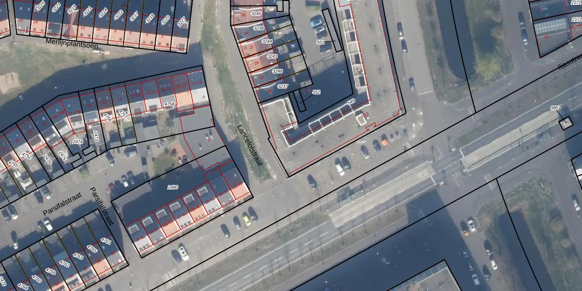 Het adres is gelegen op perceel 549 in de sectie W en de kadastrale gemeente Almere. De kadastrale aanduiding is aldus AMR04-W-549. De gemiddelde perceelgrootte in Almere is 3327,75 m². Dit perceel is kleiner: de perceeloppervlakte bedraagt 1970 m². Het kleinste perceel in de kadastrale gemeente is 0 m² groot. De grootste perceeloppervlakte is 32,12 km². Er zijn 56 adressen aanwezig op het perceel. De huidige grenzen van het perceel zijn digitaal in de Basisregistratie Kadaster (BRK) geregistreerd op 06-07-2012.
