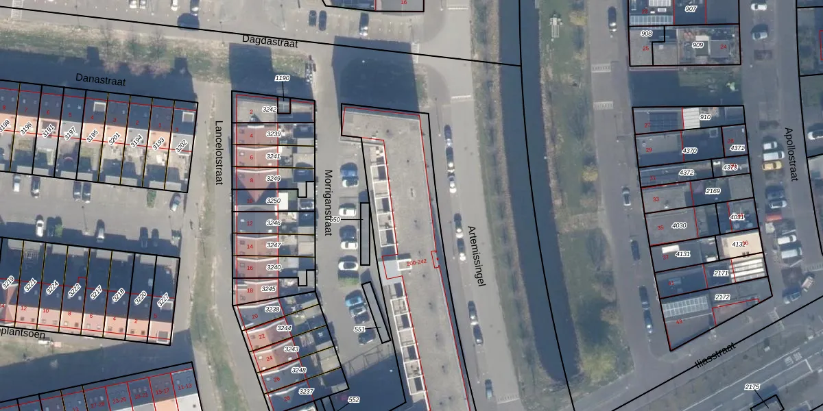 Het perceel waarop Artemissingel 217 staat heeft een oppervlakte van 1970 m². Dit is een zeer groot perceel. De perceeloppervlakte wordt geregistreerd door het Kadaster. Gedetailleerde informatie over de maten van dit perceel kunt u vinden in het rapport Kadastrale kaart met maatvoering van Artemissingel 217.