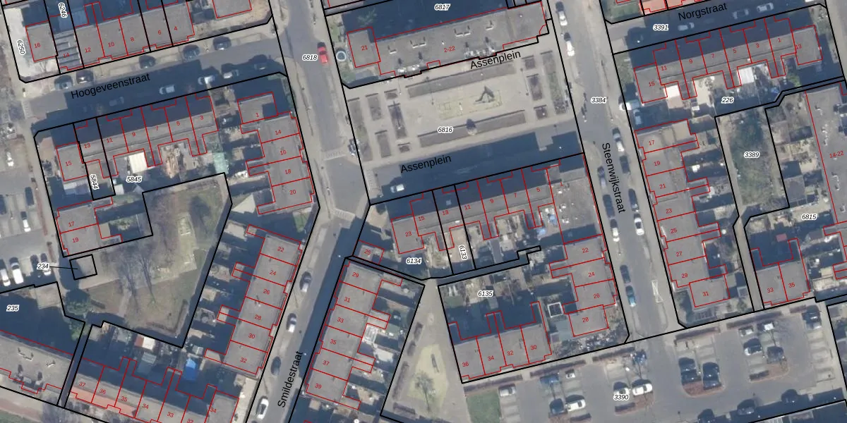 Het perceel waarop Assenplein 15 staat heeft een oppervlakte van 340 m². Dit is een groot perceel. De perceeloppervlakte wordt geregistreerd door het Kadaster. Gedetailleerde informatie over de maten van dit perceel kunt u vinden in het rapport Kadastrale kaart met maatvoering van Assenplein 15.