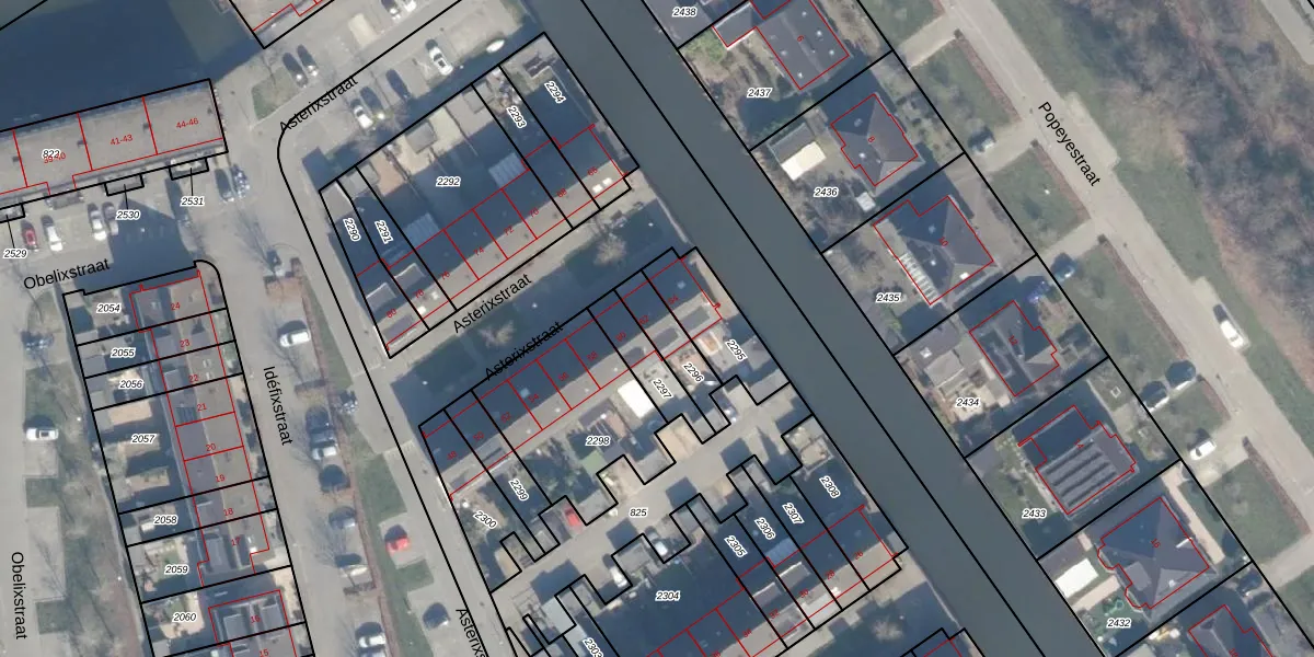 Gebruik de zoekbalk of klik op een perceel voor informatie over de adressen binnen dit perceel.