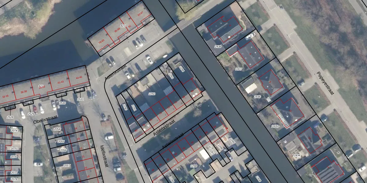 Gebruik de zoekbalk of klik op een perceel voor informatie over de adressen binnen dit perceel.