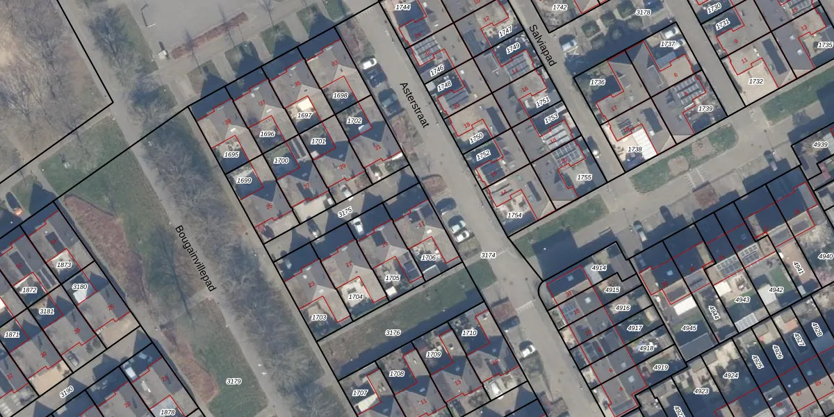 Gebruik de zoekbalk of klik op een perceel voor informatie over de adressen binnen dit perceel.