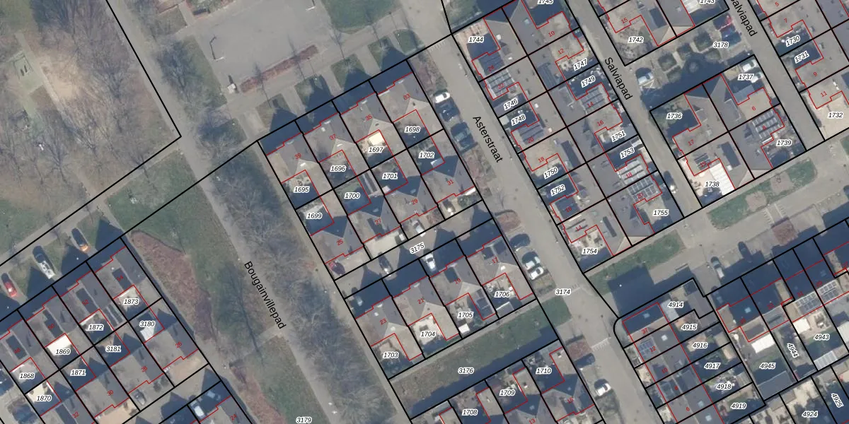 Gebruik de zoekbalk of klik op een perceel voor informatie over de adressen binnen dit perceel.