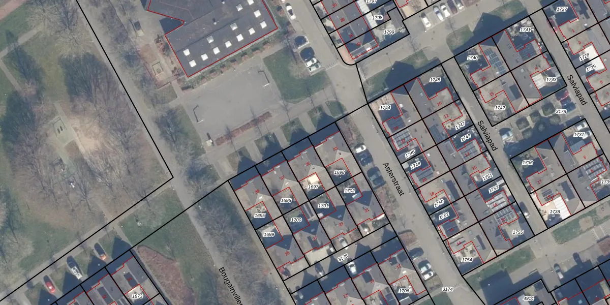 Het perceel waarop Asterstraat 35 staat heeft een oppervlakte van 184 m². Dit is een middelgroot perceel. De perceeloppervlakte wordt geregistreerd door het Kadaster. Gedetailleerde informatie over de maten van dit perceel kunt u vinden in het rapport Kadastrale kaart met maatvoering van Asterstraat 35.