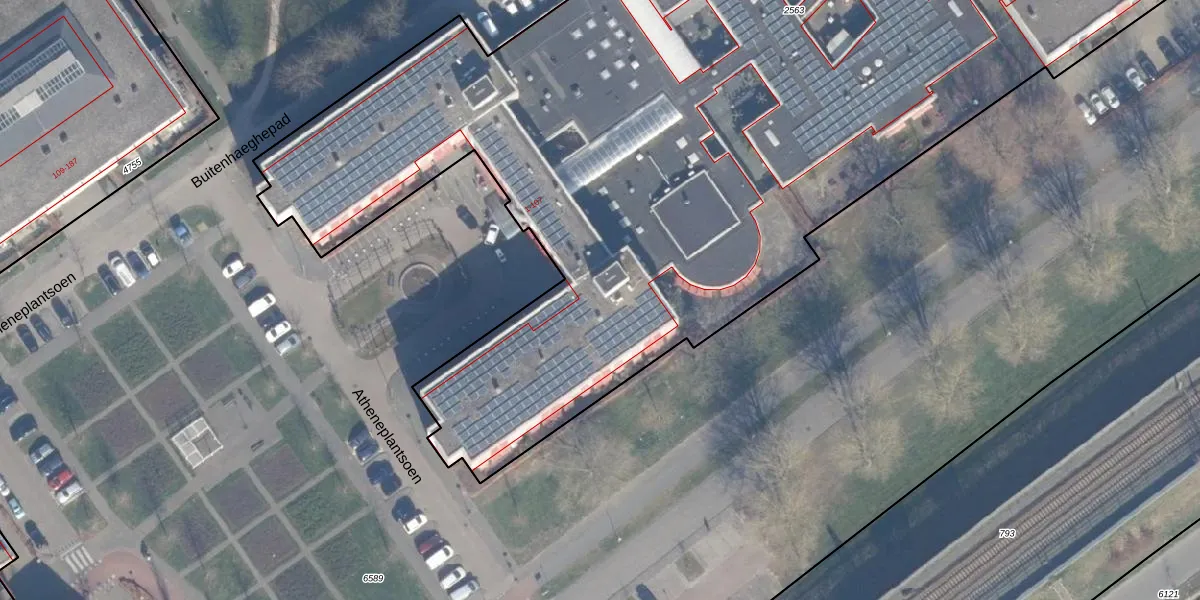 Het perceel waarop Atheneplantsoen 10 staat heeft een oppervlakte van 9585 m². Dit is een zeer groot perceel. De perceeloppervlakte wordt geregistreerd door het Kadaster. Gedetailleerde informatie over de maten van dit perceel kunt u vinden in het rapport Kadastrale kaart met maatvoering van Atheneplantsoen 10.