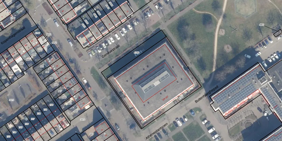 Het perceel waarop Atheneplantsoen 147 staat heeft een oppervlakte van 2235 m². Dit is een zeer groot perceel. De perceeloppervlakte wordt geregistreerd door het Kadaster. Gedetailleerde informatie over de maten van dit perceel kunt u vinden in het rapport Kadastrale kaart met maatvoering van Atheneplantsoen 147.