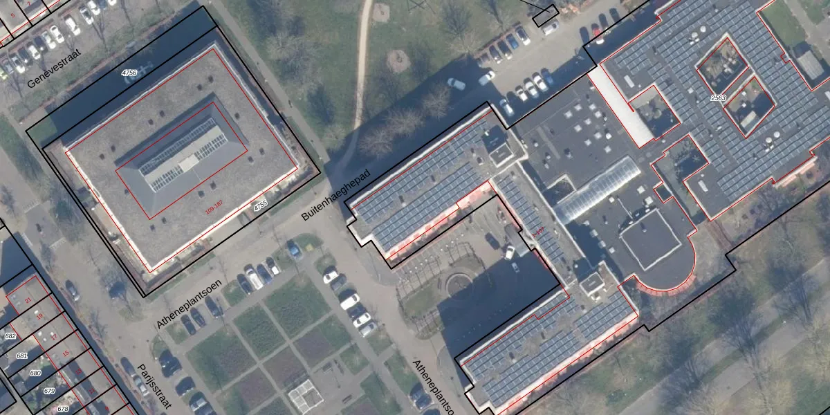 Het perceel waarop Atheneplantsoen 45 staat heeft een oppervlakte van 9585 m². Dit is een zeer groot perceel. De perceeloppervlakte wordt geregistreerd door het Kadaster. Gedetailleerde informatie over de maten van dit perceel kunt u vinden in het rapport Kadastrale kaart met maatvoering van Atheneplantsoen 45.