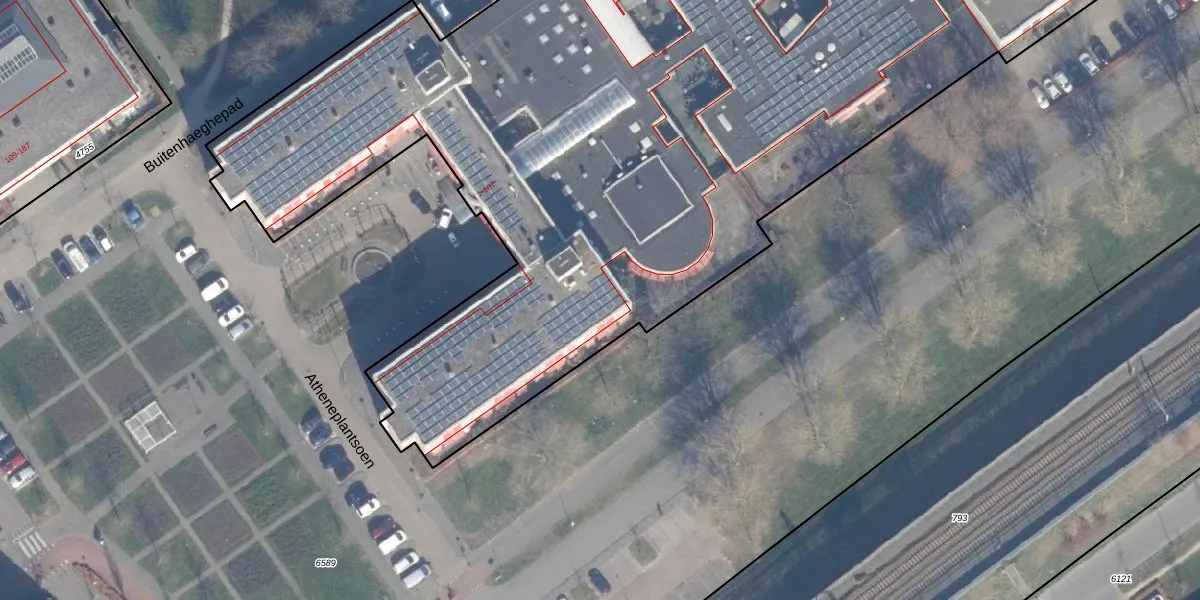 Het perceel waarop Atheneplantsoen 62 staat heeft een oppervlakte van 9585 m². Dit is een zeer groot perceel. De perceeloppervlakte wordt geregistreerd door het Kadaster. Gedetailleerde informatie over de maten van dit perceel kunt u vinden in het rapport Kadastrale kaart met maatvoering van Atheneplantsoen 62.