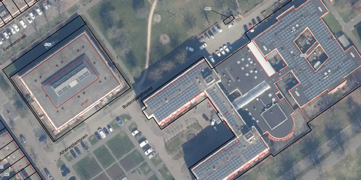 Het perceel waarop Atheneplantsoen 69 staat heeft een oppervlakte van 9585 m². Dit is een zeer groot perceel. De perceeloppervlakte wordt geregistreerd door het Kadaster. Gedetailleerde informatie over de maten van dit perceel kunt u vinden in het rapport Kadastrale kaart met maatvoering van Atheneplantsoen 69.