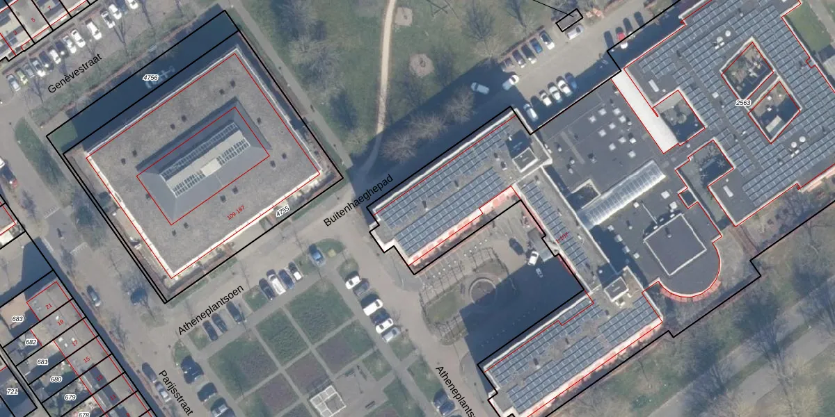 Het perceel waarop Atheneplantsoen 75 staat heeft een oppervlakte van 9585 m². Dit is een zeer groot perceel. De perceeloppervlakte wordt geregistreerd door het Kadaster. Gedetailleerde informatie over de maten van dit perceel kunt u vinden in het rapport Kadastrale kaart met maatvoering van Atheneplantsoen 75.