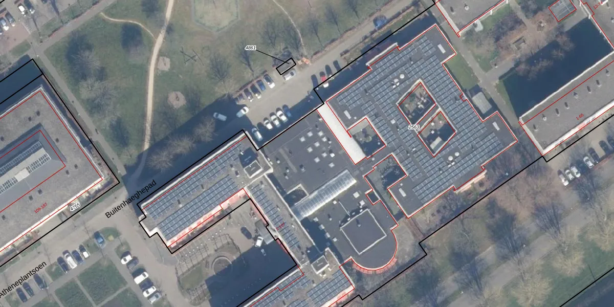 Het perceel waarop Atheneplantsoen 87 staat heeft een oppervlakte van 9585 m². Dit is een zeer groot perceel. De perceeloppervlakte wordt geregistreerd door het Kadaster. Gedetailleerde informatie over de maten van dit perceel kunt u vinden in het rapport Kadastrale kaart met maatvoering van Atheneplantsoen 87.