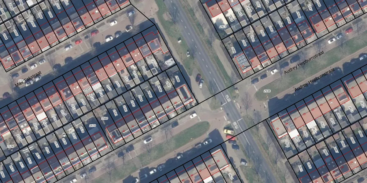 Audrey Hepburnstraat 34 is gelegen op kadastraal perceel AMR04U2588. Deze kadastrale aanduiding is uniek en wordt gebruikt door het Kadaster om eigendomsrechten en andere zakelijke rechten vast te leggen. Het perceel maakt onderdeel uit van de kadastrale gemeente Almere.
