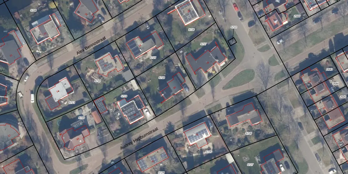 Het perceel waarop Audrey Hepburnstraat 80 staat heeft een oppervlakte van 703 m². Dit is een groot perceel. De perceeloppervlakte wordt geregistreerd door het Kadaster. Gedetailleerde informatie over de maten van dit perceel kunt u vinden in het rapport Kadastrale kaart met maatvoering van Audrey Hepburnstraat 80.