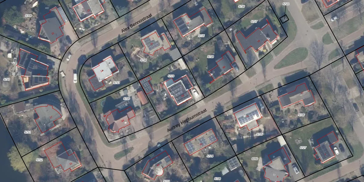 Audrey Hepburnstraat 82 is gelegen op kadastraal perceel AMR04U5719. Deze kadastrale aanduiding is uniek en wordt gebruikt door het Kadaster om eigendomsrechten en andere zakelijke rechten vast te leggen. Het perceel maakt onderdeel uit van de kadastrale gemeente Almere.