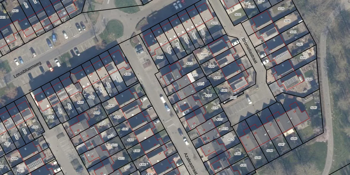 Azaleastraat 5 is gelegen op kadastraal perceel AMR04N4373. Deze kadastrale aanduiding is uniek en wordt gebruikt door het Kadaster om eigendomsrechten en andere zakelijke rechten vast te leggen. Het perceel maakt onderdeel uit van de kadastrale gemeente Almere.