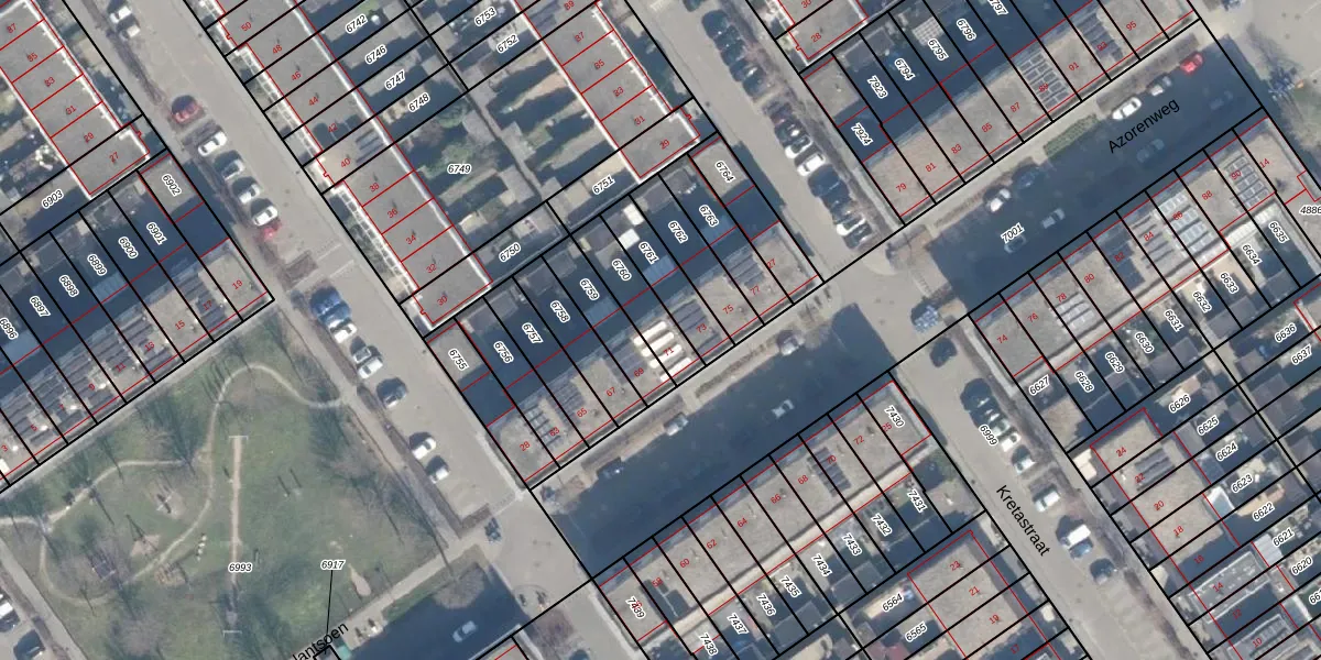Azorenweg 71 is gelegen op kadastraal perceel AMR04B6760. Deze kadastrale aanduiding is uniek en wordt gebruikt door het Kadaster om eigendomsrechten en andere zakelijke rechten vast te leggen. Het perceel maakt onderdeel uit van de kadastrale gemeente Almere.
