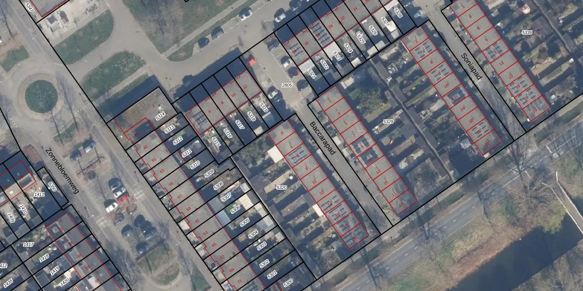 Het perceel waarop Baccarapad 4 staat heeft een oppervlakte van 1398 m². Dit is een zeer groot perceel. De perceeloppervlakte wordt geregistreerd door het Kadaster. Gedetailleerde informatie over de maten van dit perceel kunt u vinden in het rapport Kadastrale kaart met maatvoering van Baccarapad 4.