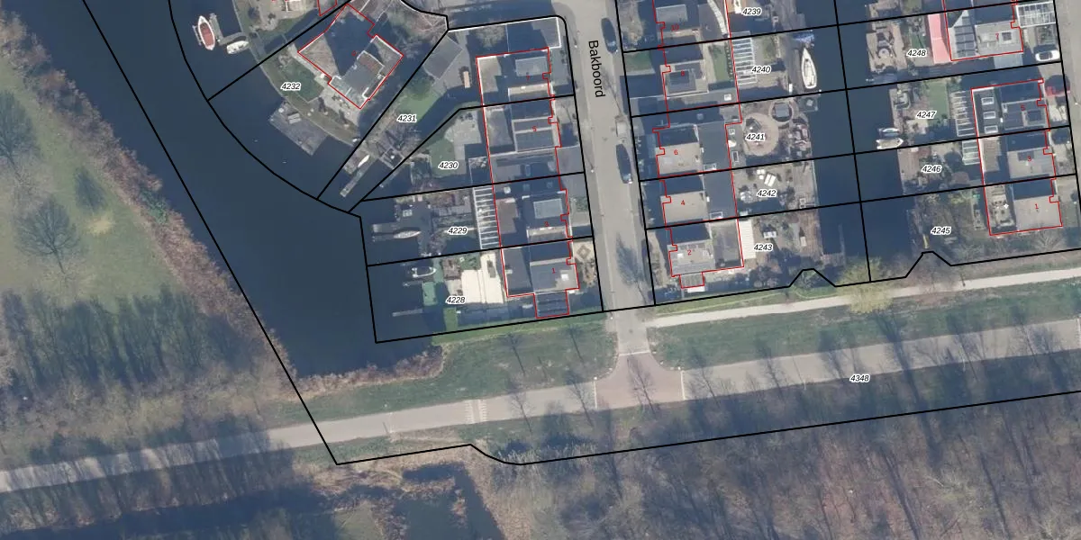 Het perceel waarop Bakboord 1 staat heeft een oppervlakte van 603 m². Dit is een groot perceel. De perceeloppervlakte wordt geregistreerd door het Kadaster. Gedetailleerde informatie over de maten van dit perceel kunt u vinden in het rapport Kadastrale kaart met maatvoering van Bakboord 1.