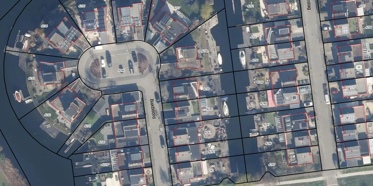 Het perceel waarop Bakboord 10 staat heeft een oppervlakte van 481 m². Dit is een groot perceel. De perceeloppervlakte wordt geregistreerd door het Kadaster. Gedetailleerde informatie over de maten van dit perceel kunt u vinden in het rapport Kadastrale kaart met maatvoering van Bakboord 10.