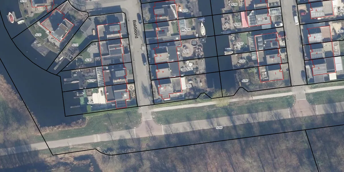 Het perceel waarop Bakboord 2 staat heeft een oppervlakte van 555 m². Dit is een groot perceel. De perceeloppervlakte wordt geregistreerd door het Kadaster. Gedetailleerde informatie over de maten van dit perceel kunt u vinden in het rapport Kadastrale kaart met maatvoering van Bakboord 2.