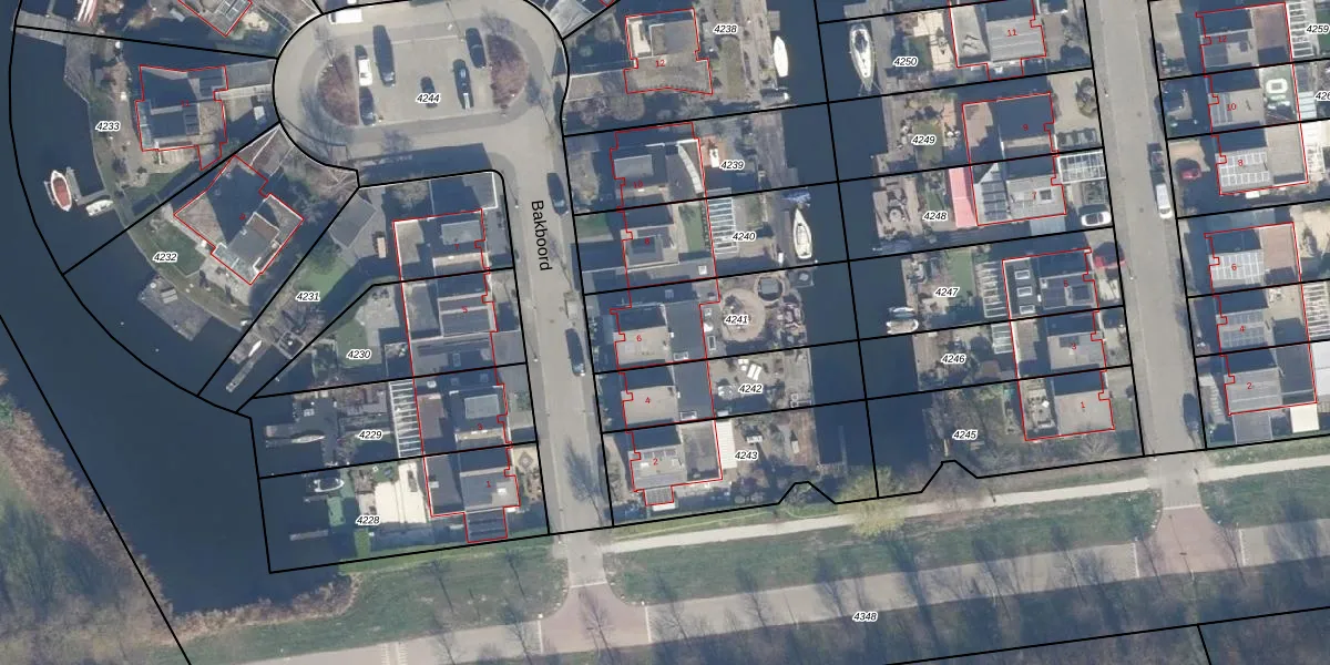 Het perceel waarop Bakboord 6 staat heeft een oppervlakte van 482 m². Dit is een groot perceel. De perceeloppervlakte wordt geregistreerd door het Kadaster. Gedetailleerde informatie over de maten van dit perceel kunt u vinden in het rapport Kadastrale kaart met maatvoering van Bakboord 6.
