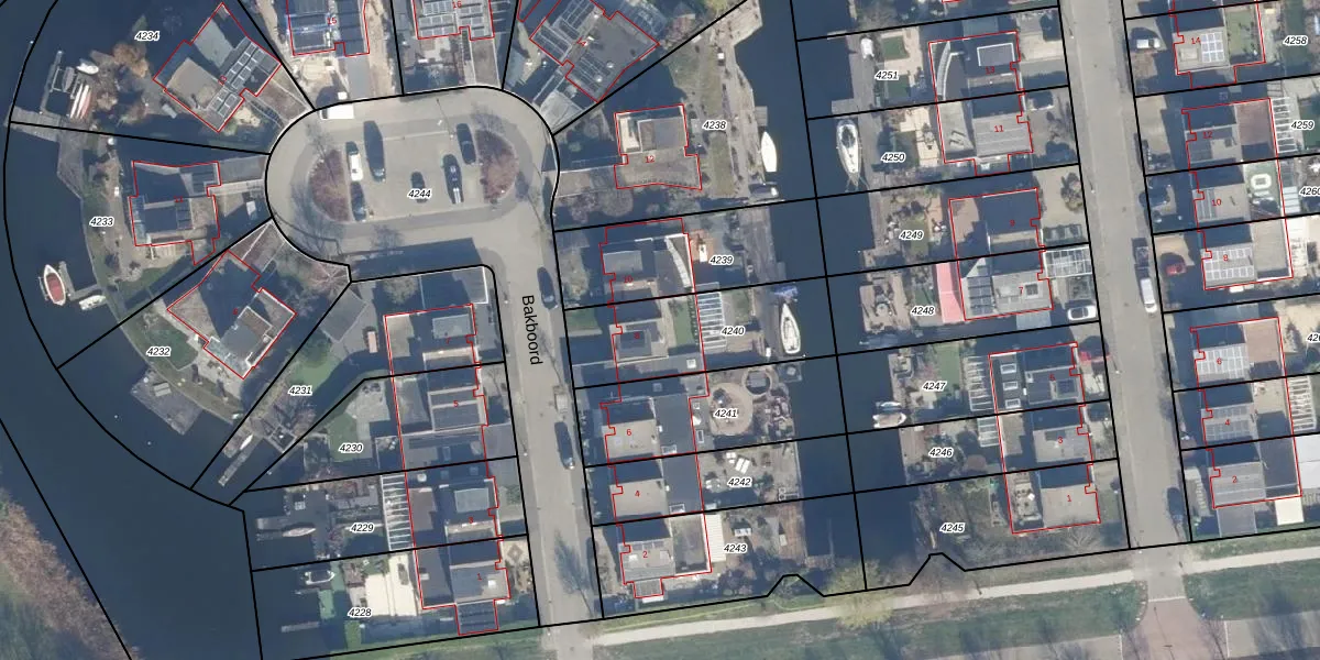 Het perceel waarop Bakboord 8 staat heeft een oppervlakte van 483 m². Dit is een groot perceel. De perceeloppervlakte wordt geregistreerd door het Kadaster. Gedetailleerde informatie over de maten van dit perceel kunt u vinden in het rapport Kadastrale kaart met maatvoering van Bakboord 8.