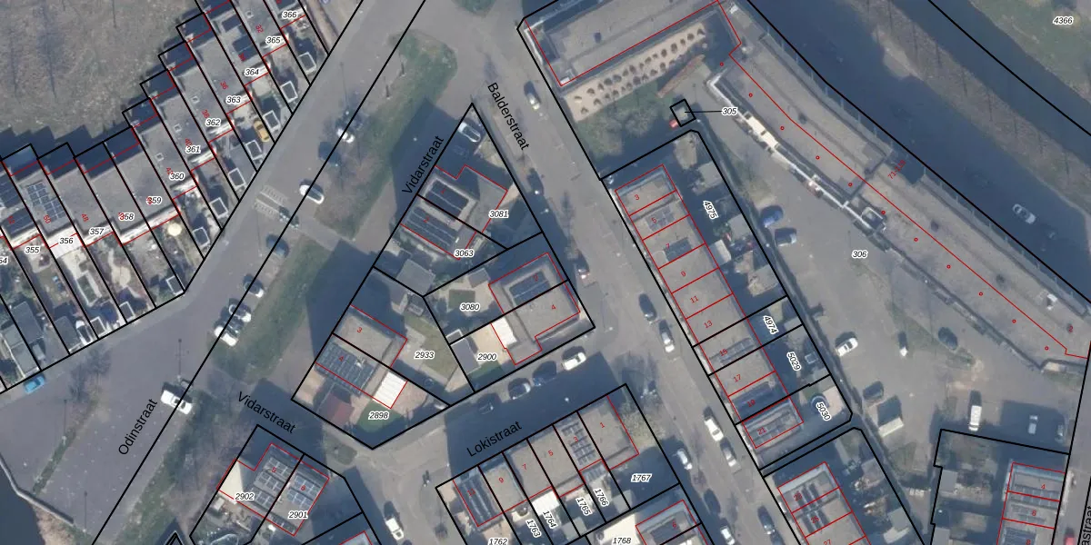 Gebruik de zoekbalk of klik op een perceel voor informatie over de adressen binnen dit perceel.