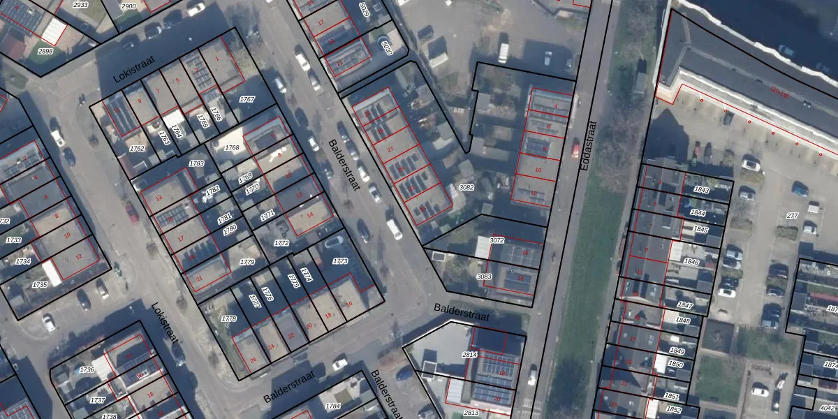 Het perceel waarop Balderstraat 33 staat heeft een oppervlakte van 1537 m². Dit is een zeer groot perceel. De perceeloppervlakte wordt geregistreerd door het Kadaster. Gedetailleerde informatie over de maten van dit perceel kunt u vinden in het rapport Kadastrale kaart met maatvoering van Balderstraat 33.