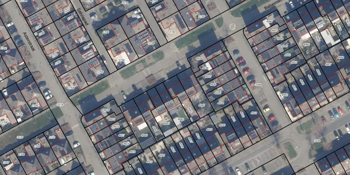 Het perceel waarop Balsemienstraat 27 staat heeft een oppervlakte van 187 m². Dit is een middelgroot perceel. De perceeloppervlakte wordt geregistreerd door het Kadaster. Gedetailleerde informatie over de maten van dit perceel kunt u vinden in het rapport Kadastrale kaart met maatvoering van Balsemienstraat 27.