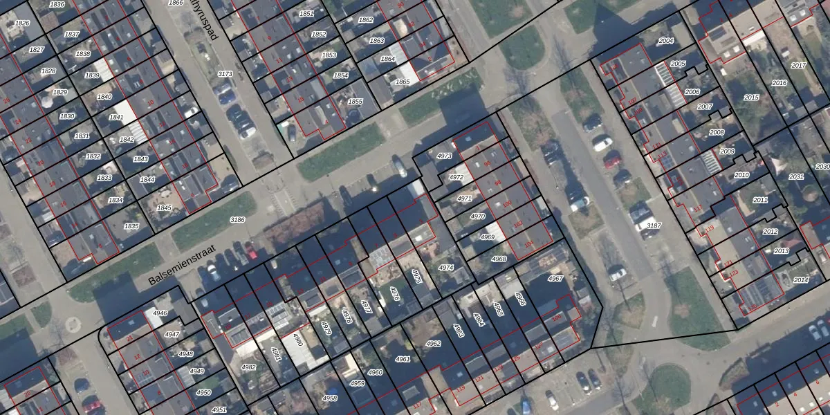 Het perceel waarop Balsemienstraat 3 staat heeft een oppervlakte van 262 m². Dit is een middelgroot perceel. De perceeloppervlakte wordt geregistreerd door het Kadaster. Gedetailleerde informatie over de maten van dit perceel kunt u vinden in het rapport Kadastrale kaart met maatvoering van Balsemienstraat 3.