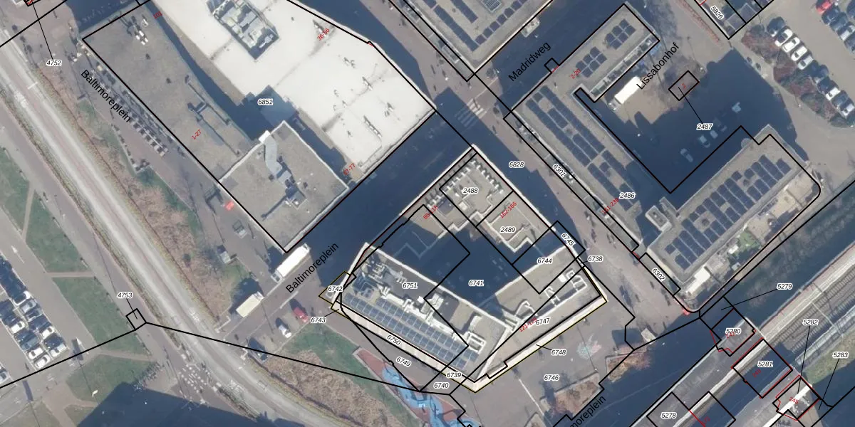 Het perceel waarop Baltimoreplein 101 staat heeft een oppervlakte van 585 m². Dit is een groot perceel. De perceeloppervlakte wordt geregistreerd door het Kadaster. Gedetailleerde informatie over de maten van dit perceel kunt u vinden in het rapport Kadastrale kaart met maatvoering van Baltimoreplein 101.