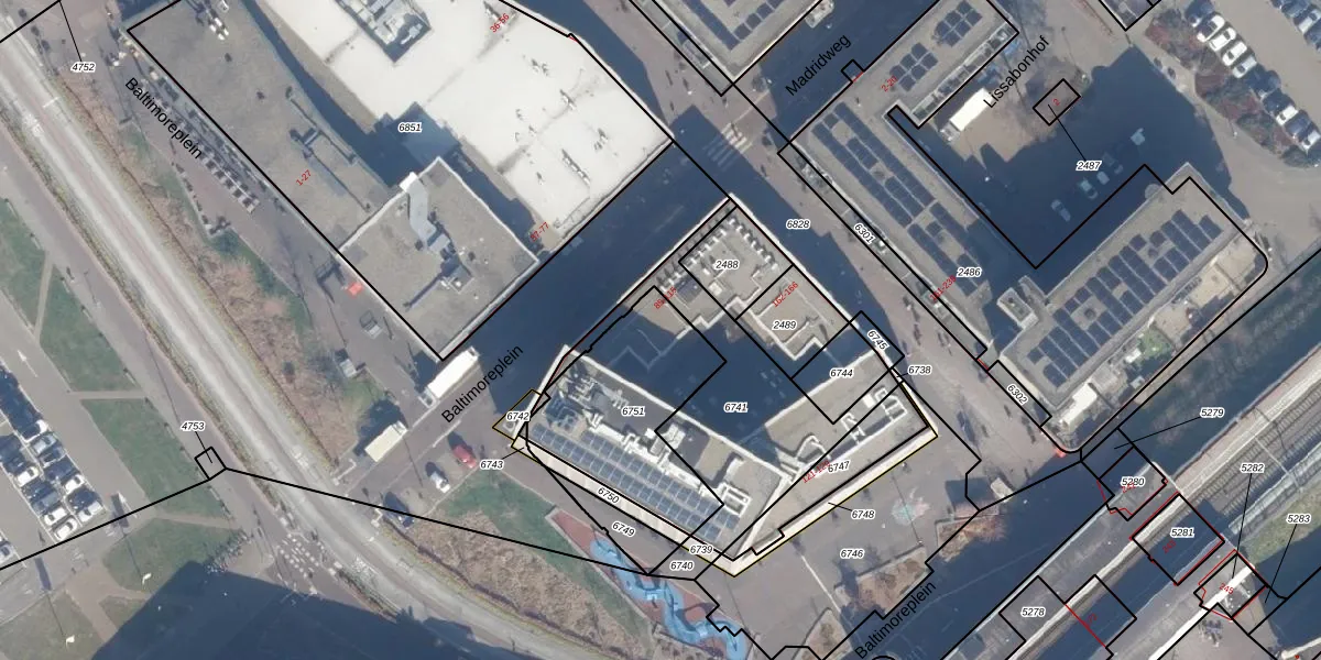 Het perceel waarop Baltimoreplein 113 staat heeft een oppervlakte van 585 m². Dit is een groot perceel. De perceeloppervlakte wordt geregistreerd door het Kadaster. Gedetailleerde informatie over de maten van dit perceel kunt u vinden in het rapport Kadastrale kaart met maatvoering van Baltimoreplein 113.