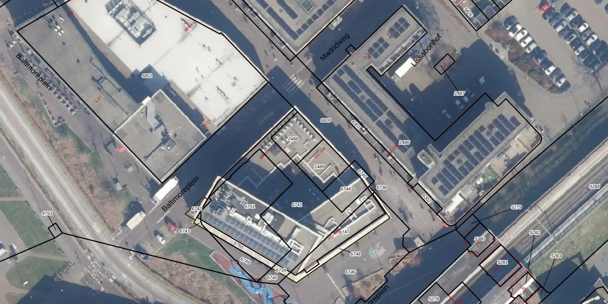 Het perceel waarop Baltimoreplein 89 staat heeft een oppervlakte van 151 m². Dit is een middelgroot perceel. De perceeloppervlakte wordt geregistreerd door het Kadaster. Gedetailleerde informatie over de maten van dit perceel kunt u vinden in het rapport Kadastrale kaart met maatvoering van Baltimoreplein 89.