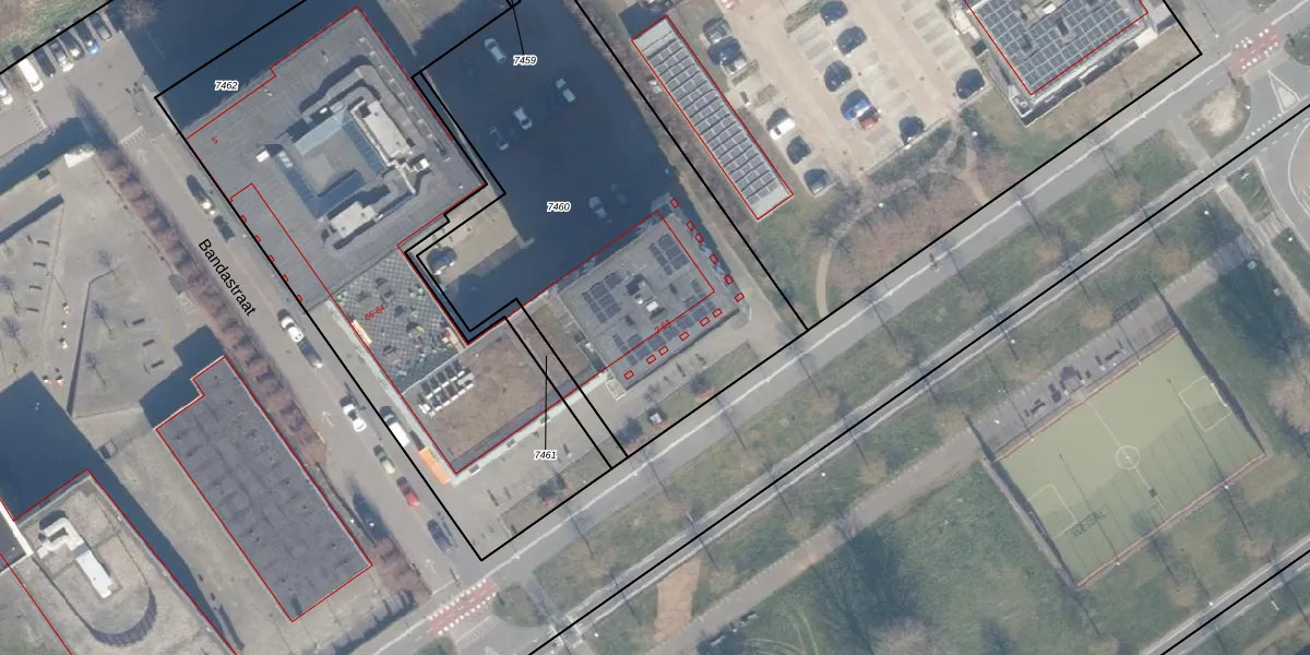 Het perceel waarop Bandastraat 38 staat heeft een oppervlakte van 2323 m². Dit is een zeer groot perceel. De perceeloppervlakte wordt geregistreerd door het Kadaster. Gedetailleerde informatie over de maten van dit perceel kunt u vinden in het rapport Kadastrale kaart met maatvoering van Bandastraat 38.