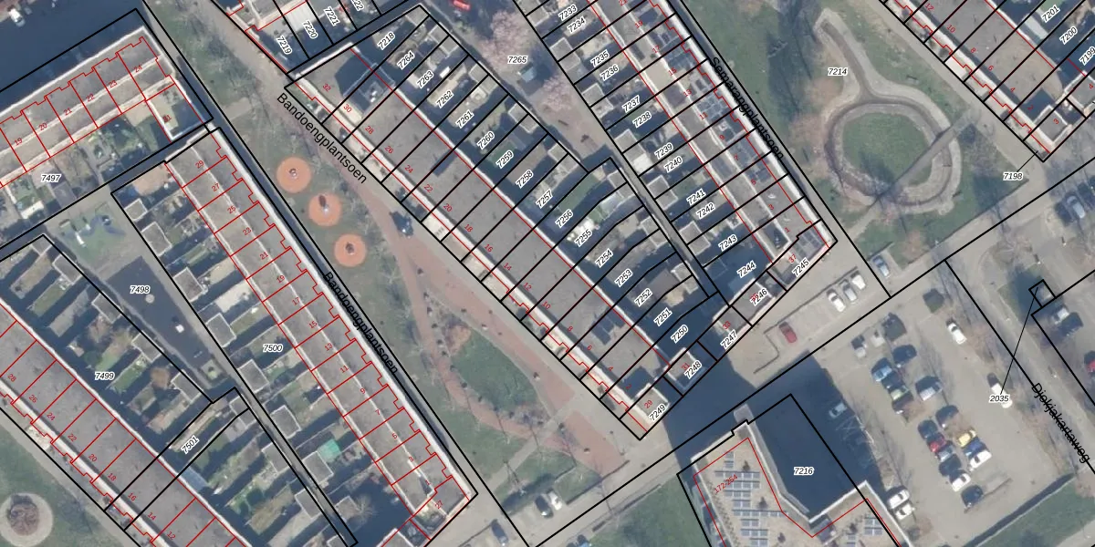 Het perceel waarop Bandoengplantsoen 12 staat heeft een oppervlakte van 162 m². Dit is een middelgroot perceel. De perceeloppervlakte wordt geregistreerd door het Kadaster. Gedetailleerde informatie over de maten van dit perceel kunt u vinden in het rapport Kadastrale kaart met maatvoering van Bandoengplantsoen 12.
