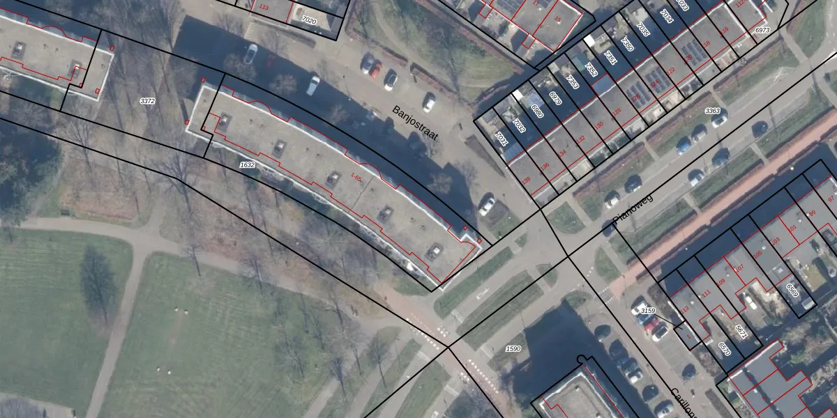 Banjostraat 15 is gelegen op kadastraal perceel AMR04Q1632. Deze kadastrale aanduiding is uniek en wordt gebruikt door het Kadaster om eigendomsrechten en andere zakelijke rechten vast te leggen. Het perceel maakt onderdeel uit van de kadastrale gemeente Almere.