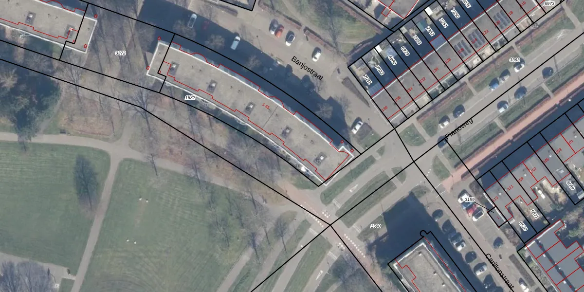 Het perceel waarop Banjostraat 25 staat heeft een oppervlakte van 1374 m². Dit is een zeer groot perceel. De perceeloppervlakte wordt geregistreerd door het Kadaster. Gedetailleerde informatie over de maten van dit perceel kunt u vinden in het rapport Kadastrale kaart met maatvoering van Banjostraat 25.