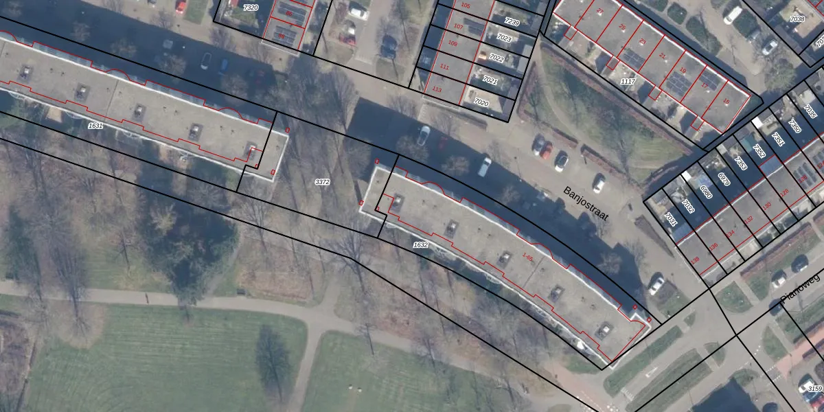 Het perceel waarop Banjostraat 61 staat heeft een oppervlakte van 1374 m². Dit is een zeer groot perceel. De perceeloppervlakte wordt geregistreerd door het Kadaster. Gedetailleerde informatie over de maten van dit perceel kunt u vinden in het rapport Kadastrale kaart met maatvoering van Banjostraat 61.
