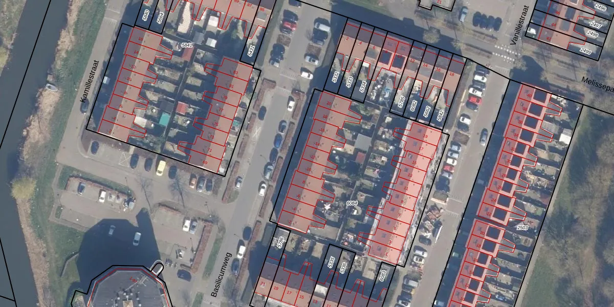 Het perceel waarop Basilicumweg 12 staat heeft een oppervlakte van 3007 m². Dit is een zeer groot perceel. De perceeloppervlakte wordt geregistreerd door het Kadaster. Gedetailleerde informatie over de maten van dit perceel kunt u vinden in het rapport Kadastrale kaart met maatvoering van Basilicumweg 12.