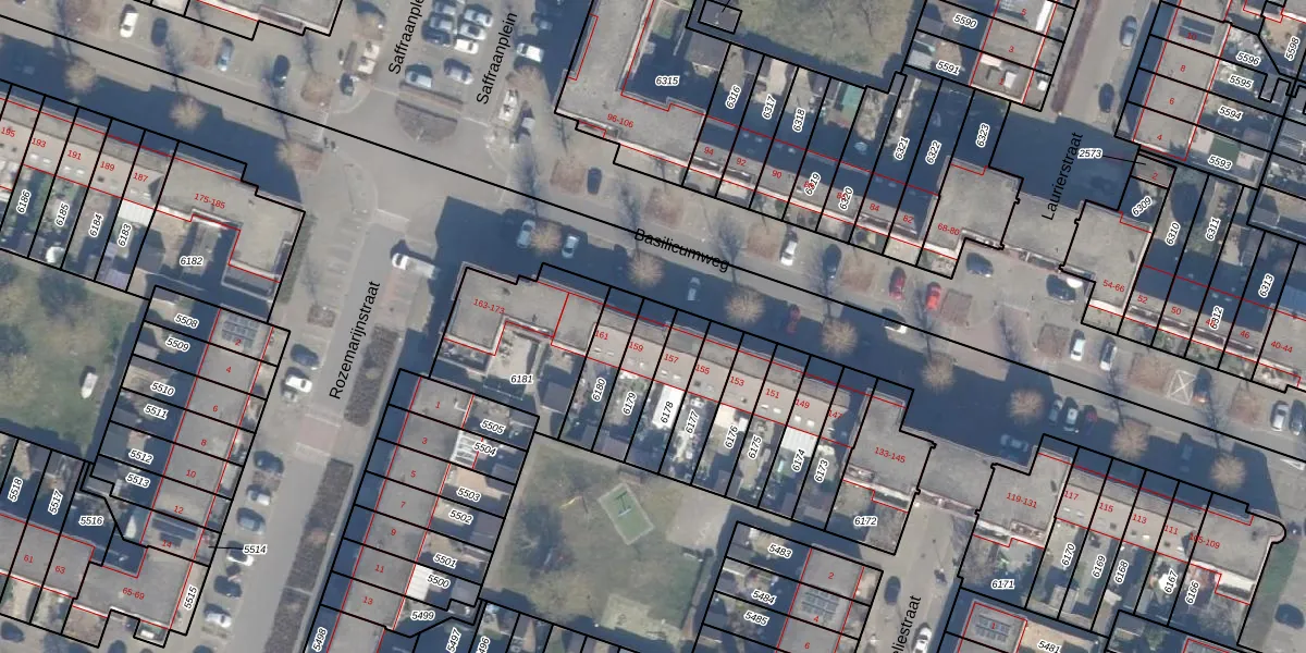 Basilicumweg 159 is gelegen op kadastraal perceel AMR04O6179. Deze kadastrale aanduiding is uniek en wordt gebruikt door het Kadaster om eigendomsrechten en andere zakelijke rechten vast te leggen. Het perceel maakt onderdeel uit van de kadastrale gemeente Almere.