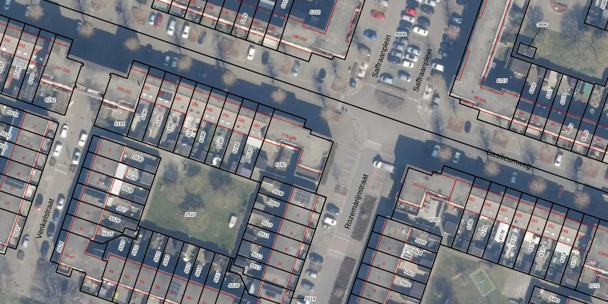 Basilicumweg 179 is gelegen op kadastraal perceel AMR04O6182. Deze kadastrale aanduiding is uniek en wordt gebruikt door het Kadaster om eigendomsrechten en andere zakelijke rechten vast te leggen. Het perceel maakt onderdeel uit van de kadastrale gemeente Almere.