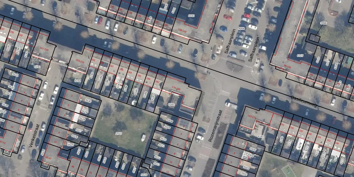 Basilicumweg 181 is gelegen op kadastraal perceel AMR04O6182. Deze kadastrale aanduiding is uniek en wordt gebruikt door het Kadaster om eigendomsrechten en andere zakelijke rechten vast te leggen. Het perceel maakt onderdeel uit van de kadastrale gemeente Almere.