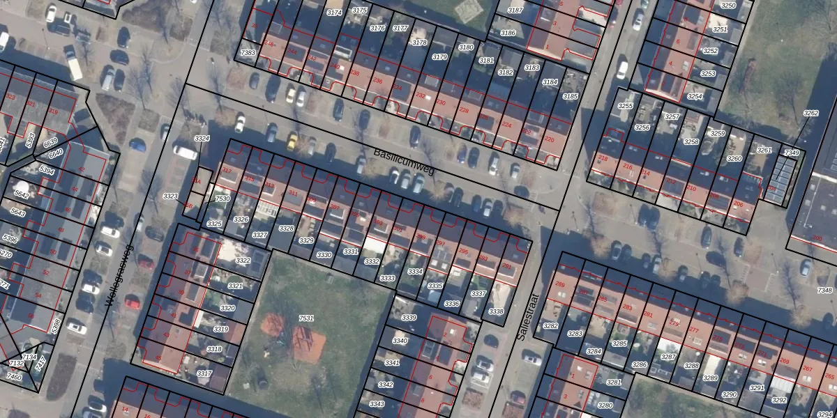 Basilicumweg 301 is gelegen op kadastraal perceel AMR04O3333. Deze kadastrale aanduiding is uniek en wordt gebruikt door het Kadaster om eigendomsrechten en andere zakelijke rechten vast te leggen. Het perceel maakt onderdeel uit van de kadastrale gemeente Almere.